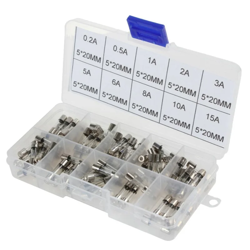 Kit fusibili con 100 fusibili con 10 valori diversi. Questo kit contiene fusibili in vetro (rapidi) da 250 V.