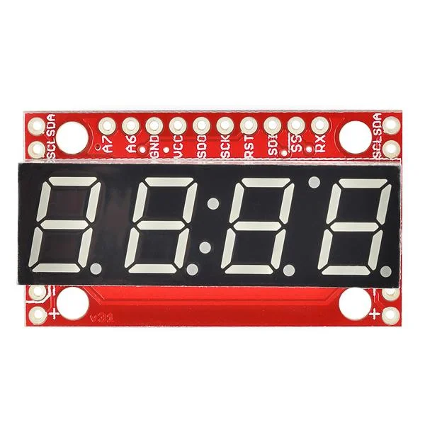 Sparkfun ha apportato alcune modifiche chiave al layout per facilitare l’integrazione di questo dispositivo nel tuo progetto. I pin di alimentazione e I2C si trovano ora sui lati della scheda, consentendo un facile concatenamento per visualizzare stringhe di cifre pi\\u00F9 lunghe. Inoltre, sono stati aggiunti fori di montaggio alle schede, consentendo un montaggio sicuro sui distanziatori.