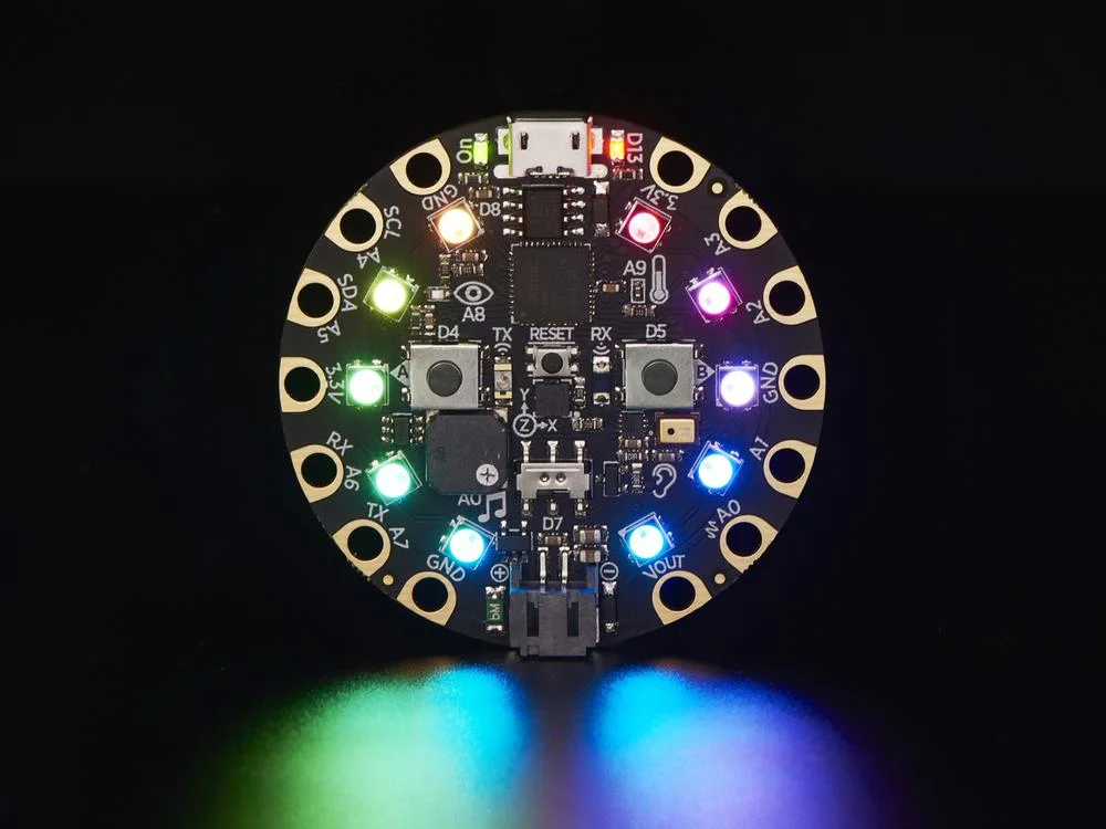 Dotata di 10 mini NeoPixel che visualizzano uno spettro di colori, Circuit Playground Express vanta diversi sensori integrati: movimento, temperatura, luce e suono. L’interazione \\u00E8 arricchita da pulsanti, un interruttore a scorrimento, funzionalit\\u00E0 a infrarossi e input touch capacitivi. Il cuore della scheda \\u00E8 un processore ATSAMD21 ARM Cortex M0 con 2 MB di memoria Flash SPI, che facilita un’esperienza di programmazione avanzata tramite CircuitPython. Una porta microUSB supporta funzionalit\\u00E0 di programmazione, porta seriale, tastiera, mouse, joystick e MIDI.