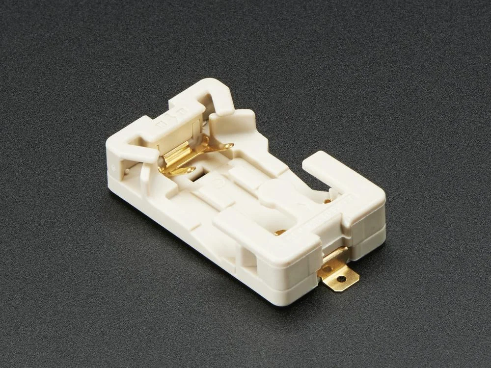 Una linguetta funge da collegamento di terra comune, mentre l’altra fornisce un’uscita a +3 Volt. Progettato per batterie a bottone al litio CR2032 (diametro 20 mm, spessore 3,2 mm), questo supporto supporta batterie con una capacit\\u00E0 tipica di oltre 200 mAh.