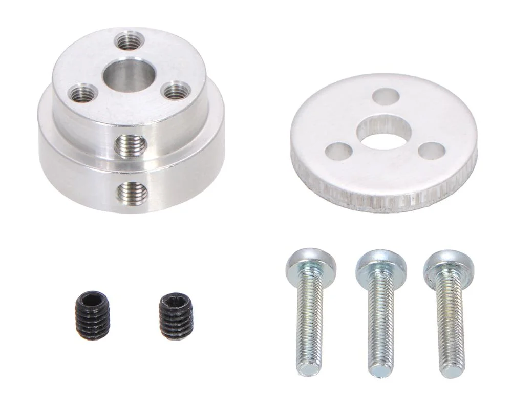 Questo gruppo in alluminio in due parti si monta direttamente su alberi di uscita del motore da 1/4 di pollice di diametro come quelli dei nostri motori passo-passo NEMA 23 e consente di guidare la maggior parte di scooter, skateboard, pattini in linea e altre ruote comuni compatibili con i popolari cuscinetti a sfera 608 . Sono incluse due viti M4 per fissare l’adattatore filettato all’albero motore e tre viti M3 da 14 mm per bloccare la ruota tra l’adattatore filettato e la rondella.