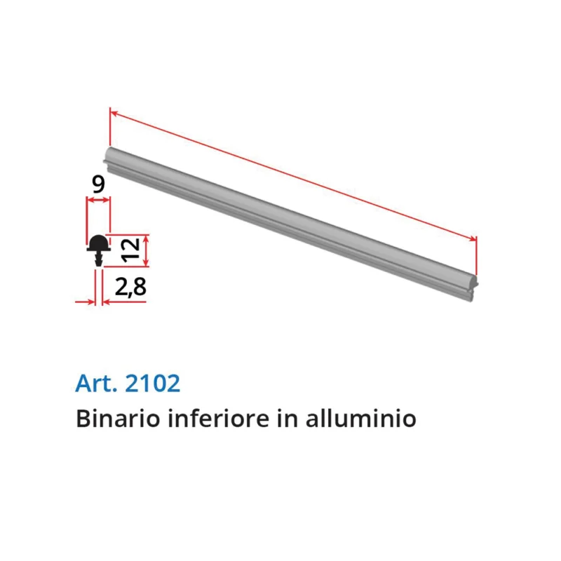 Binario a funghetto inferiore in alluminio grezzo per sistemi scorrevoli serie 2100 Subito Disponibile