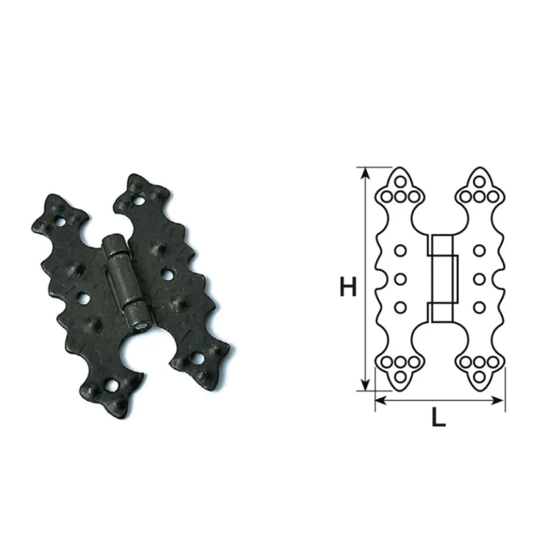 a cerniera in ferro a farfalla piccola con finitura nera è pensata per applicazioni su ante, sportelli e mobili di piccole dimensioni, dove è richiesta una soluzione compatta ma resistente. Le sue misure (H=70 mm, L=38 mm) la rendono ideale per dettagli di precisione su arredi dallo stile classico, rustico o artigianale.