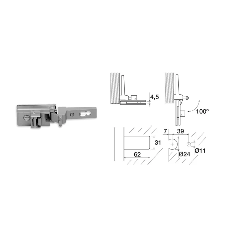 La cerniera per anta vetro cromo lucido anta interna è progettata per garantire un supporto solido e un movimento fluido nelle applicazioni su ante in vetro, specialmente per ante interne di mobili e vetrine.