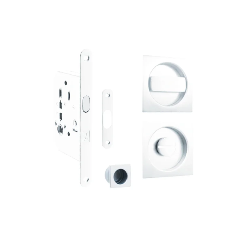 Il kit scorrevole quadro WC con serratura in finitura bianco è un accessorio discreto e moderno, pensato per completare con stile la chiusura di porte scorrevoli da bagno. Il design quadrato, essenziale e pulito, si adatta perfettamente ad ambienti luminosi, minimalisti o contemporanei.