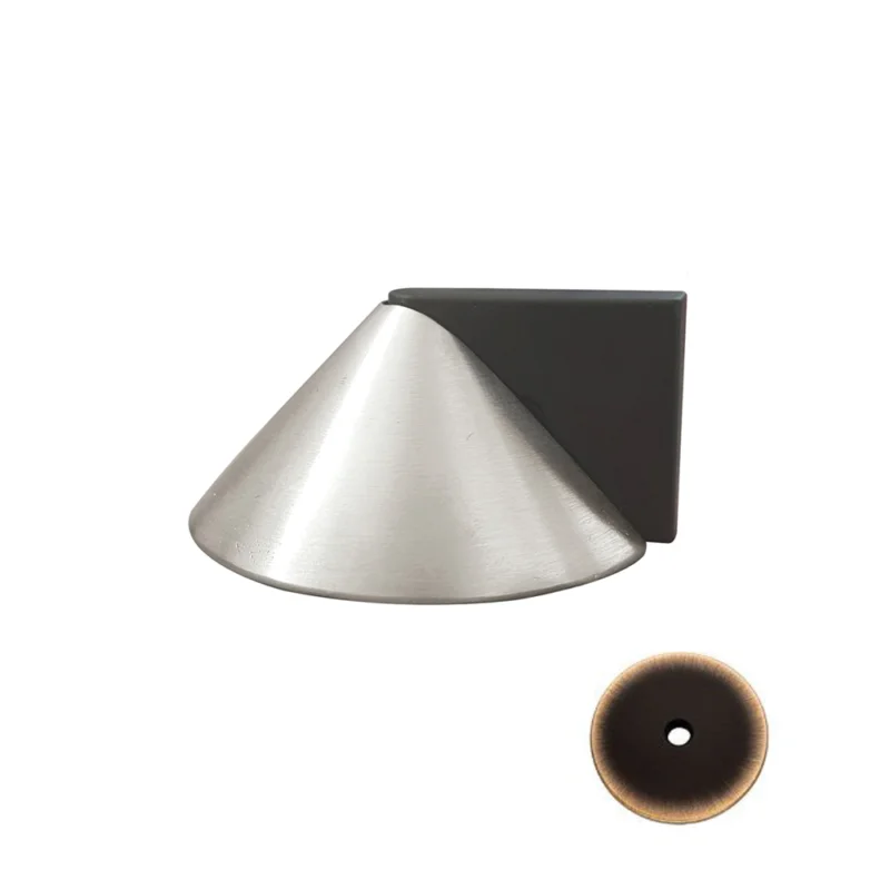 Il paracolpo a forma di cono, con diametro 50 mm e altezza 27 mm, in finitura bronzato, è progettato per proteggere muri e porte da urti accidentali, preservando l’integrità degli ambienti. La sua forma slanciata e compatta lo rende ideale anche per spazi ridotti, garantendo al tempo stesso un’efficace protezione.
