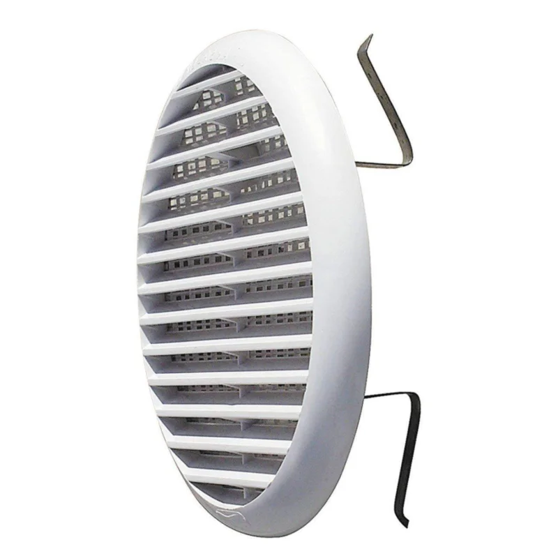 In polistirolo antiurto con molle in acciaio. Con rete anti insetti stampata. Colore bianco.