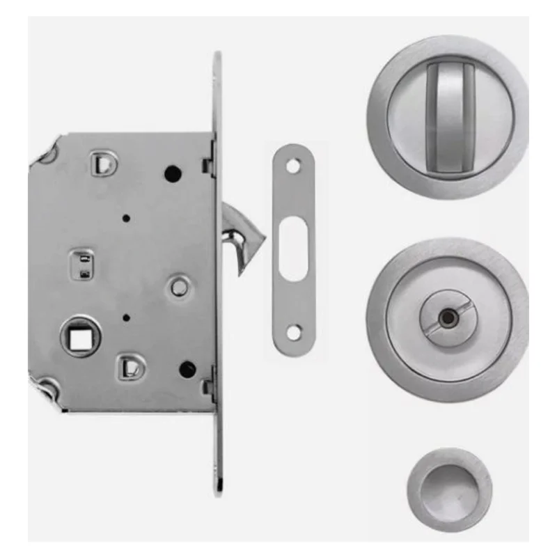 Il Kit scorrevole tondo WC è una soluzione pensata per porte scorrevoli da bagno e per ambienti interni in cui è necessario abbinare funzionalità, riservatezza ed eleganza. La forma tonda e la finitura cromo satinato conferiscono al prodotto un’estetica pulita e moderna, adatta sia a contesti classici sia contemporanei.