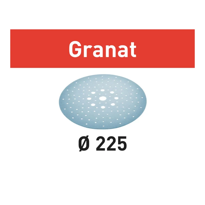 Il disco abrasivo Festool Granat Ø225 P150 è progettato per garantire prestazioni elevate e una levigatura controllata su superfici in legno, stucco, gesso e vernici.
