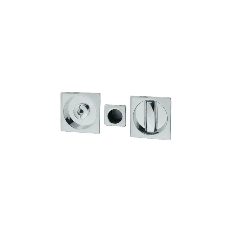 Il kit scorrevole quadro WC in cromo lucido  è un accessorio elegante e funzionale, pensato per garantire privacy e stile alle porte scorrevoli da bagno. Il design squadrato, abbinato alla brillantezza della finitura, lo rende perfetto per ambienti moderni e raffinati.