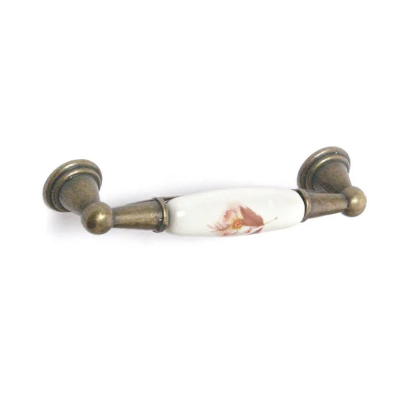 MANIGLIA IN CERAMICA AVORIO I.96 CON DECORAZIONI BRONZO Prezzo Di Fabbrica