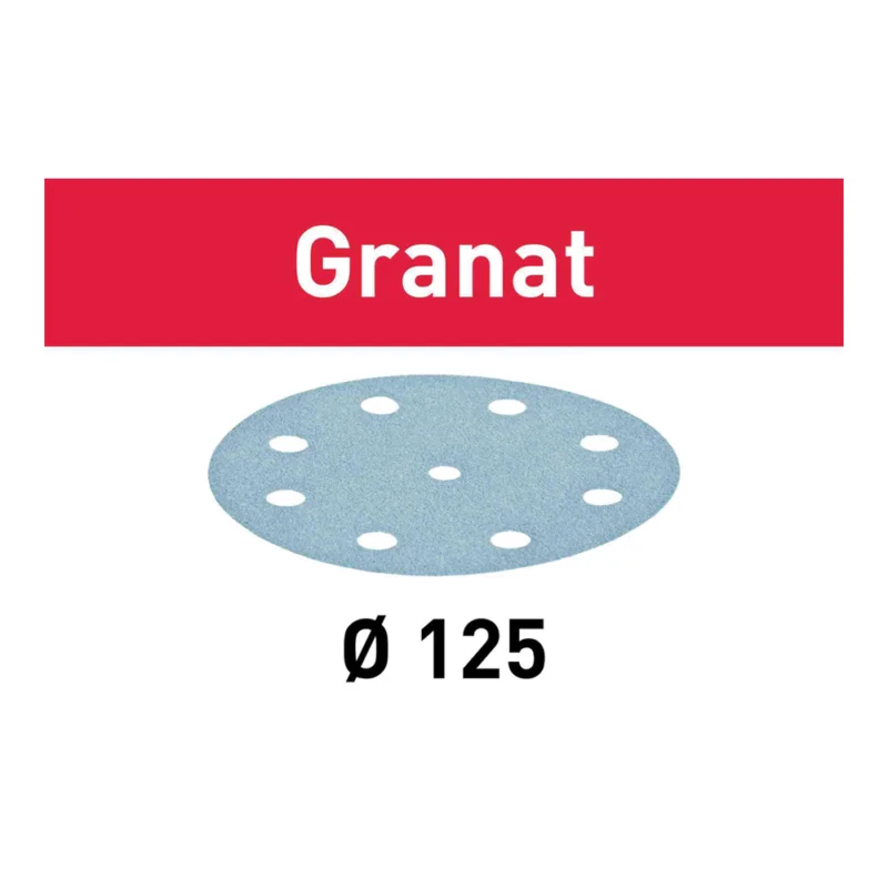 Disco abrasivo Festool Granat Ø125 mm grana P120 con 8 fori, ideale per levigatura intermedia e preparazione delle superfici prima di verniciatura o finitura. La foratura consente un’efficace aspirazione della polvere, migliorando pulizia di lavoro e costanza di resa. Fornito in confezione da 10 pezzi.