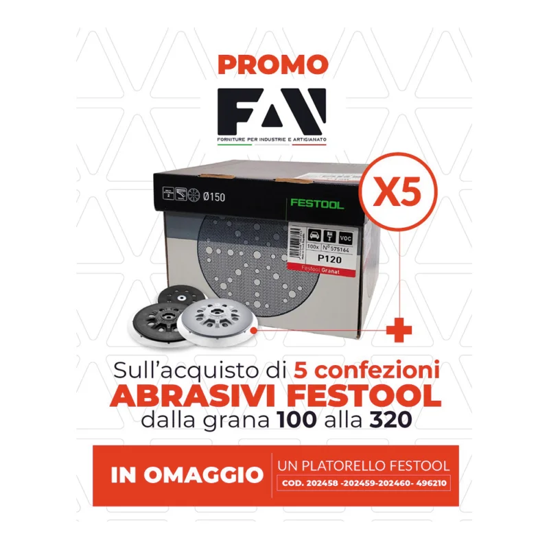 Promo 500 Dischi Abrasivi Festool Granat d.150 + Platorello Festool Omaggio Occasione Imperdibile