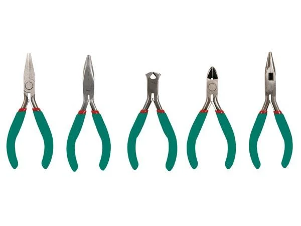 Questo set di cinque pinze di precisione (pinze a taglio laterale, tronchesi, pinze a becchi tondi, pinze a becchi piatti e pinze a becchi lunghi) \\u00E8 indispensabile per l’hobbista dell’elettronica. Le pinze sono realizzate in acciaio inossidabile e dotate di impugnatura antiscivolo.
