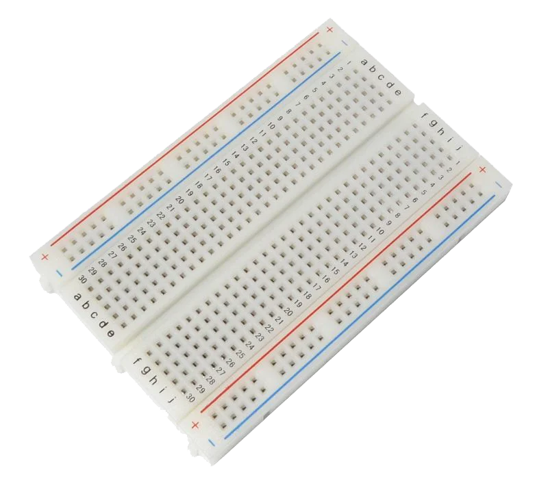 I morsetti nella breadboard sono a forma di U, il che garantisce connessioni affidabili e riutilizzabili. \\u00C8 possibile collegarvi cavi jumper standard, resistori, LED, circuiti integrati e altri componenti elettronici. La breadboard ha 2 strisce per la distribuzione dell’alimentazione (+ e -) e 30 righe x 10 colonne per il posizionamento dei componenti.
