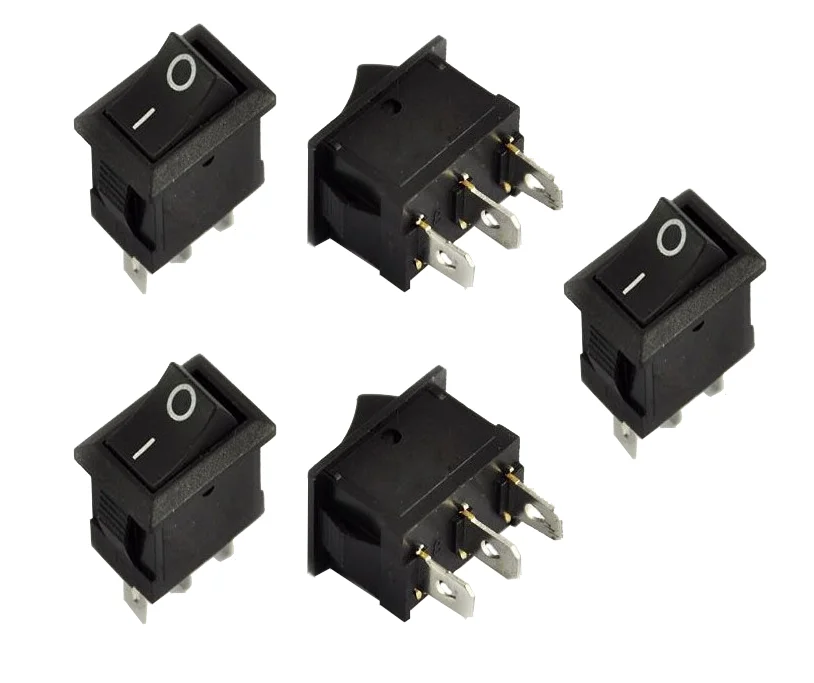 Questo set di 5 interruttori a bilanciere \\u00E8 una scelta versatile per i tuoi progetti elettronici. Gli interruttori sono unipolari e hanno 3 pin, il che li rende adatti sia per applicazioni NC (normalmente chiuso) che NA (normalmente aperto). Il tipo \\u00E8 KCD1-101 e la loro potenza nominale \\u00E8 di 6 A 250 V/10 A 125 V CA, il che li rende adatti per una vasta gamma di applicazioni.