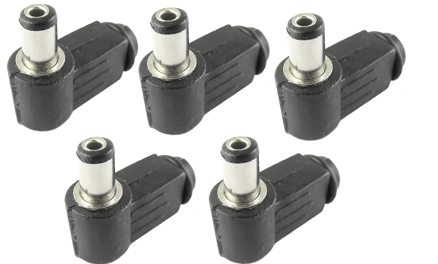 Questo set contiene 5 connettori DC Plug appositamente progettati con un angolo di 90 gradi, che offre una flessibilit\\u00E0 unica quando si collegano i dispositivi. I tappi misurano 2,1 mm x 5,5 mm e garantiscono un’aderenza affidabile e uniforme.