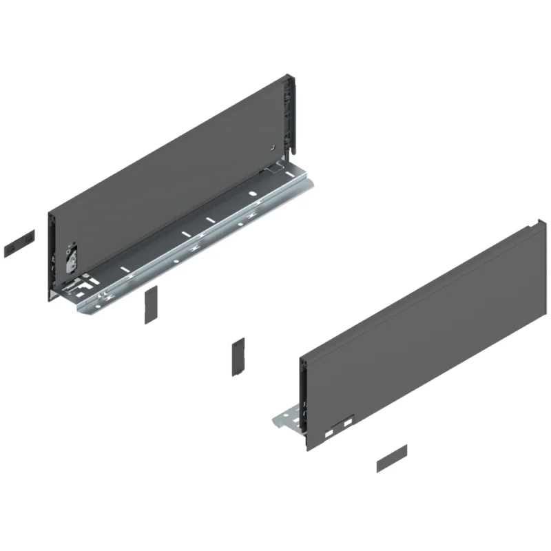 Il set spondine BLUM LEGRABOX pure 770K4002S è pensato per la realizzazione di cassetti di alta qualità in cucine, bagni, living e arredi su misura. La finitura grigio orione opaco conferisce al mobile un aspetto elegante e contemporaneo, adatto sia ad ambienti moderni sia a soluzioni d’arredo tecniche e professionali.