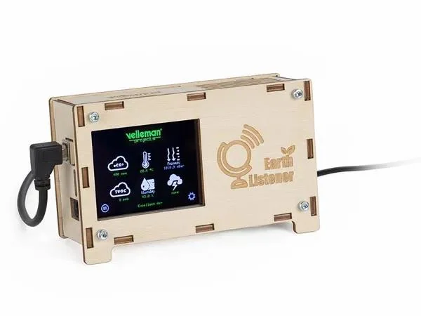 Earth Listener \\u00E8 un dispositivo sensore basato su Arduino che legge molteplici valori ambientali per indicare la qualit\\u00E0 dell’aria. Questo kit si monta in 15 minuti e non \\u00E8 necessario il saldatore! Basta collegare le parti ed i fili, riporre il tutto nella custodia e collegarla ad una presa USB da 5V. La scheda di sviluppo Mega \\u00E8 preprogrammata e mostra i valori di eCO2, TVOC (particelle nell’aria), pressione barometrica, temperatura e umidit\\u00E0 sul touchscreen TFT. Per finire, l’Earth Listener contiene anche un sensore di rilevamento dei fulmini. Se viene rilevato un fulmine (o una scarica elettronica), l’Earth Listener emetter\\u00E0 un tono di allarme e registrer\\u00E0 la distanza in cui si trova il fulmine. Poich\\u00E9 tutto \\u00E8 open source, puoi aggiungere altri 6 sensori all’Earth Listener tramite lo schermo del sensore. La registrazione \\u00E8 possibile tramite la scheda micro SD (non inclusa).