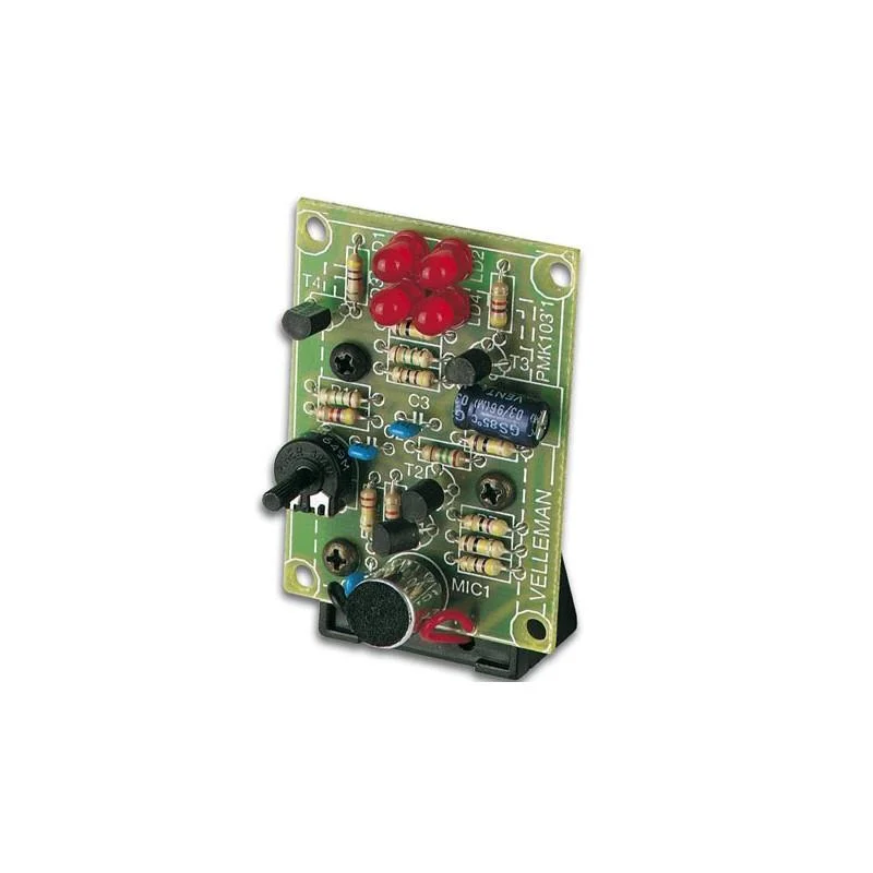 Quattro LED ad alta intensit\\u00E0 si accendono e reagiscono simultaneamente a ogni suono. Per diverse applicazioni divertenti e pratiche, ad es. indicatore sonoro, semplice unit\\u00E0 suono-luce per la musica. L’unit\\u00E0 pu\\u00F2 anche essere utilizzata per indicare quando suona il campanello o il telefono, cosa particolarmente interessante per i non udenti. Sensibilit\\u00E0 regolabile con potenziometro. Microfono incorporato.